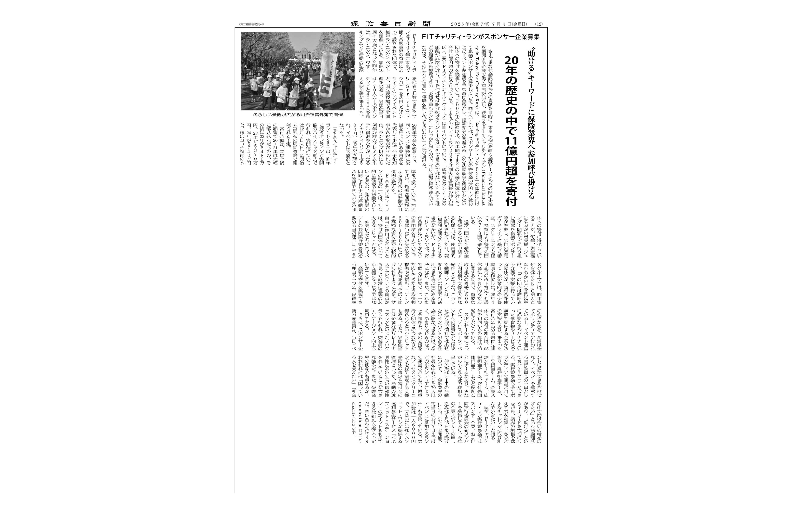 12月7日(日)に開催される、FITチャリティ・ラン2025の企業参加登録が始まりました!2025/06/22 |