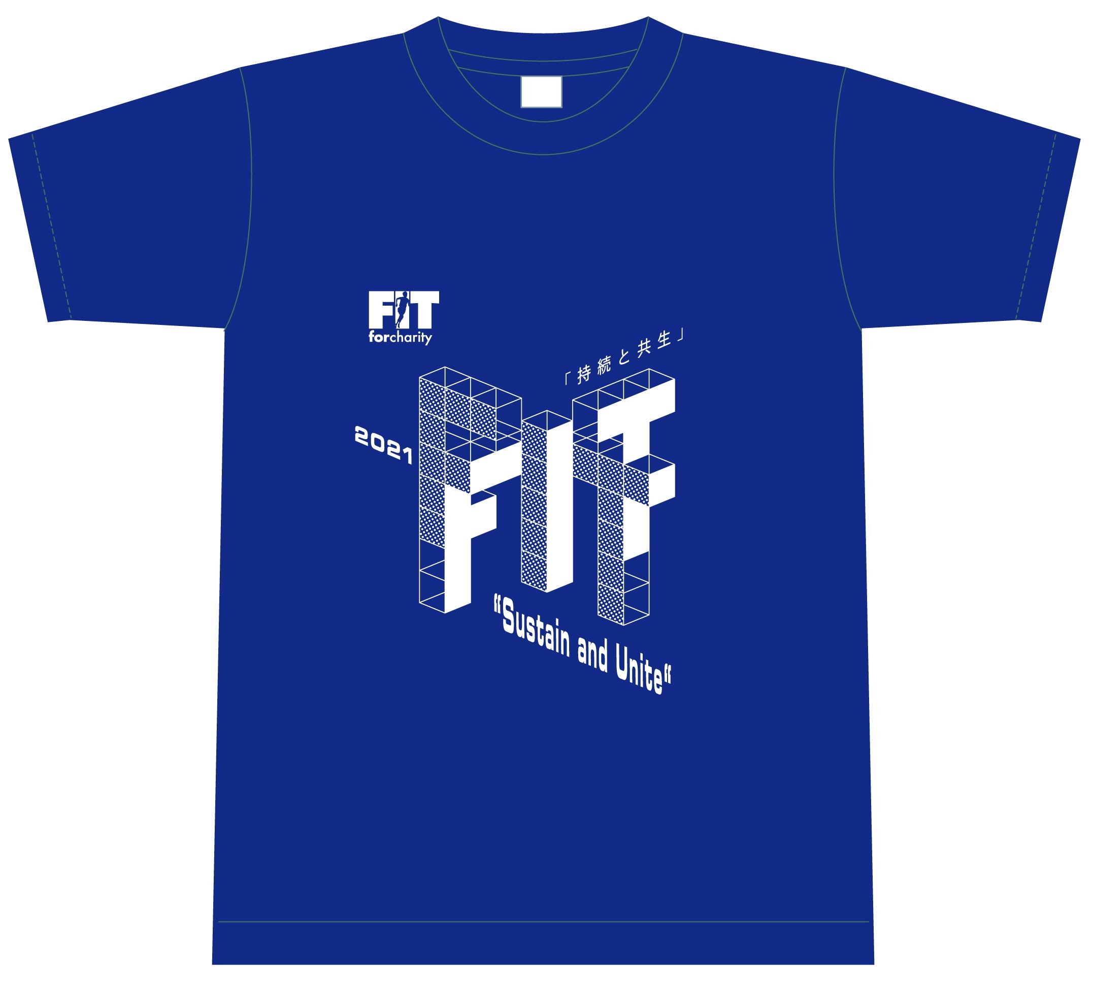バーチャルランと進化したFIT が、持続と共生、リアルとバーチャル、これからのFITを構築するものを表現しています。Tシャツカラーは、海や空の雄大で広い空間をイメージしたブルーといたしました。