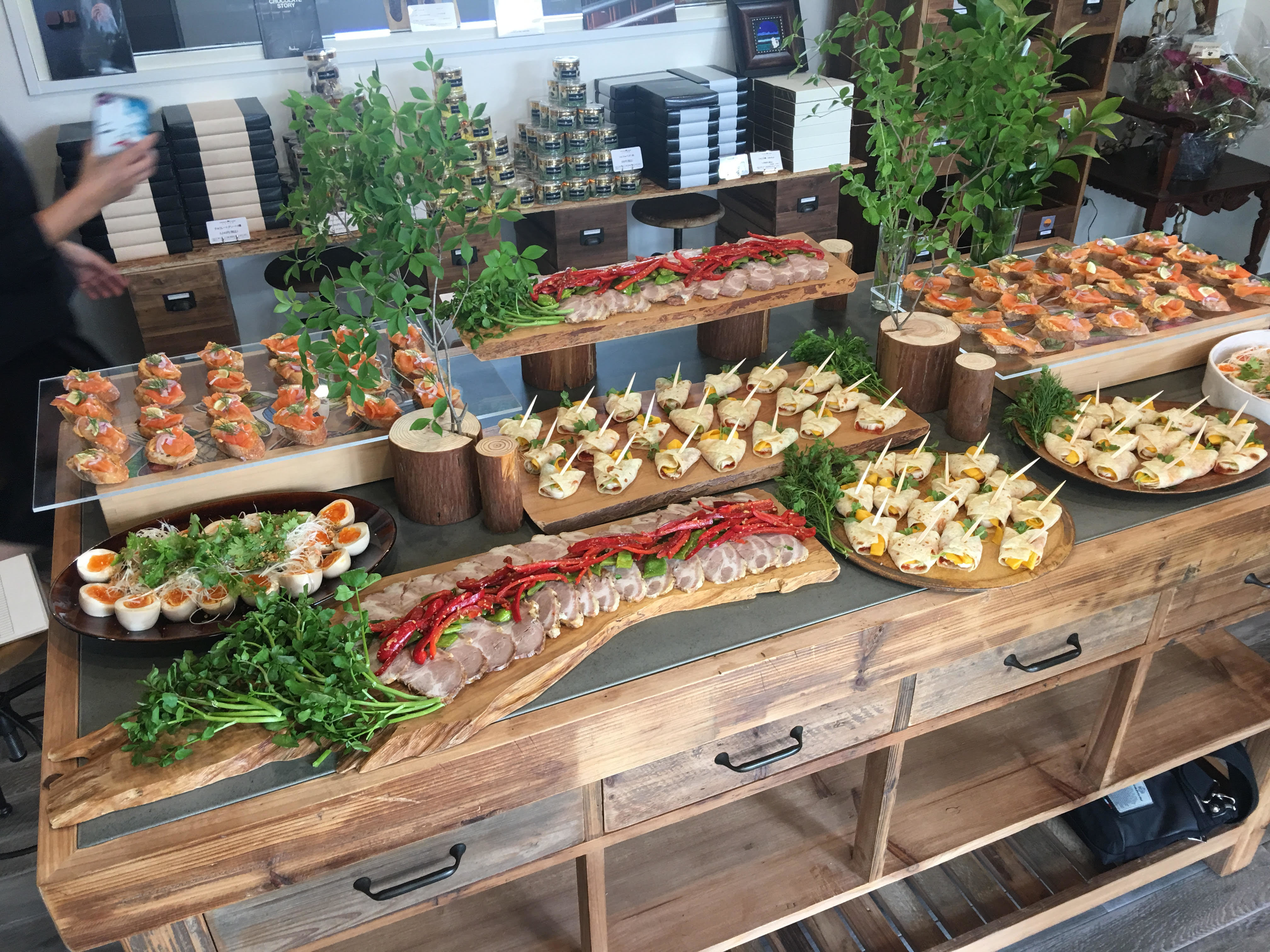 The finger foods for the opening party of CHOCOLABOU was prepared by Ms. Satoko Kobiyama, of Yama Foods.